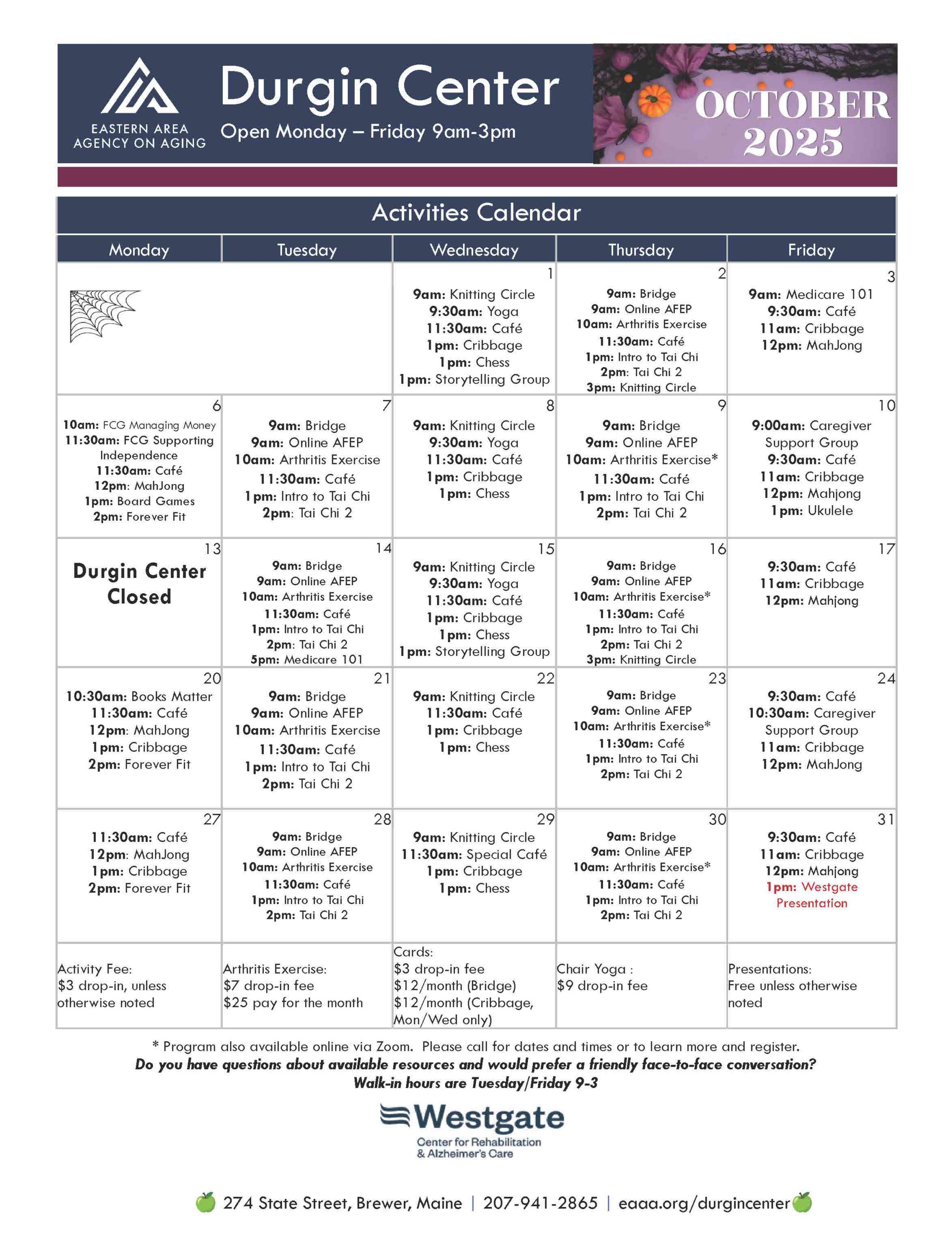 Durgin October 2025 Calendar Page 1